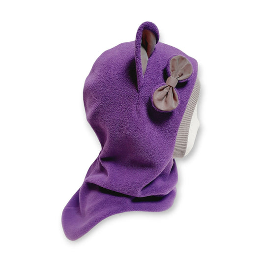 The warm fleece outer layer retains heat, while the soft knitted lining inside provides comfort directly against the skin. The cuff design ensures a snug fit around the face, protecting the ears from cold air.