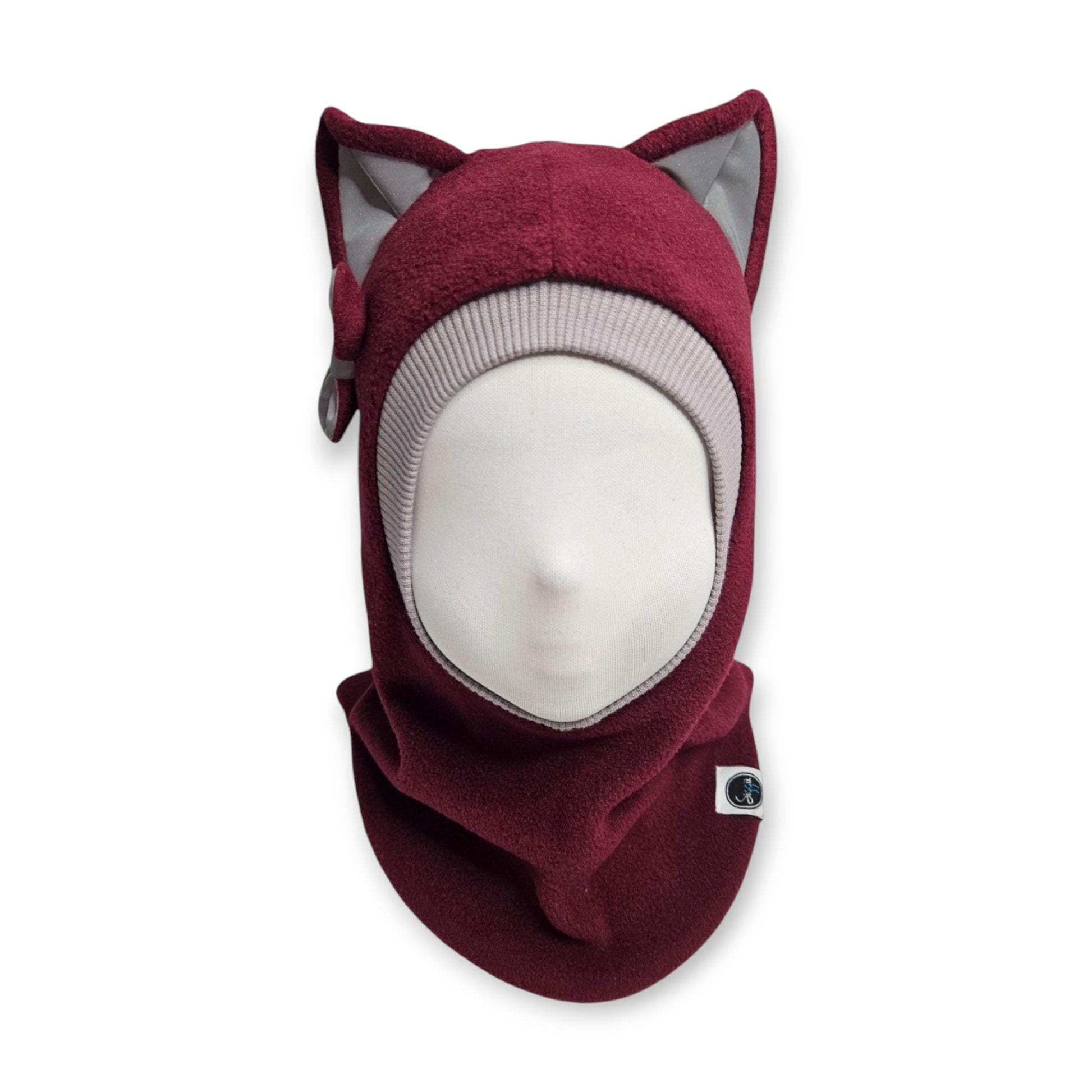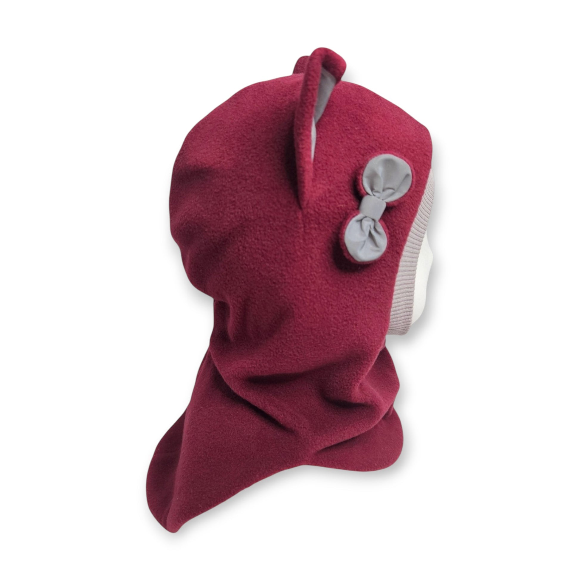 Ziemas Balaklava Cepure Kaķis - Bordo / Gaiši Pelēka Maliņa / Atstarojošas Ausis & Bantīte