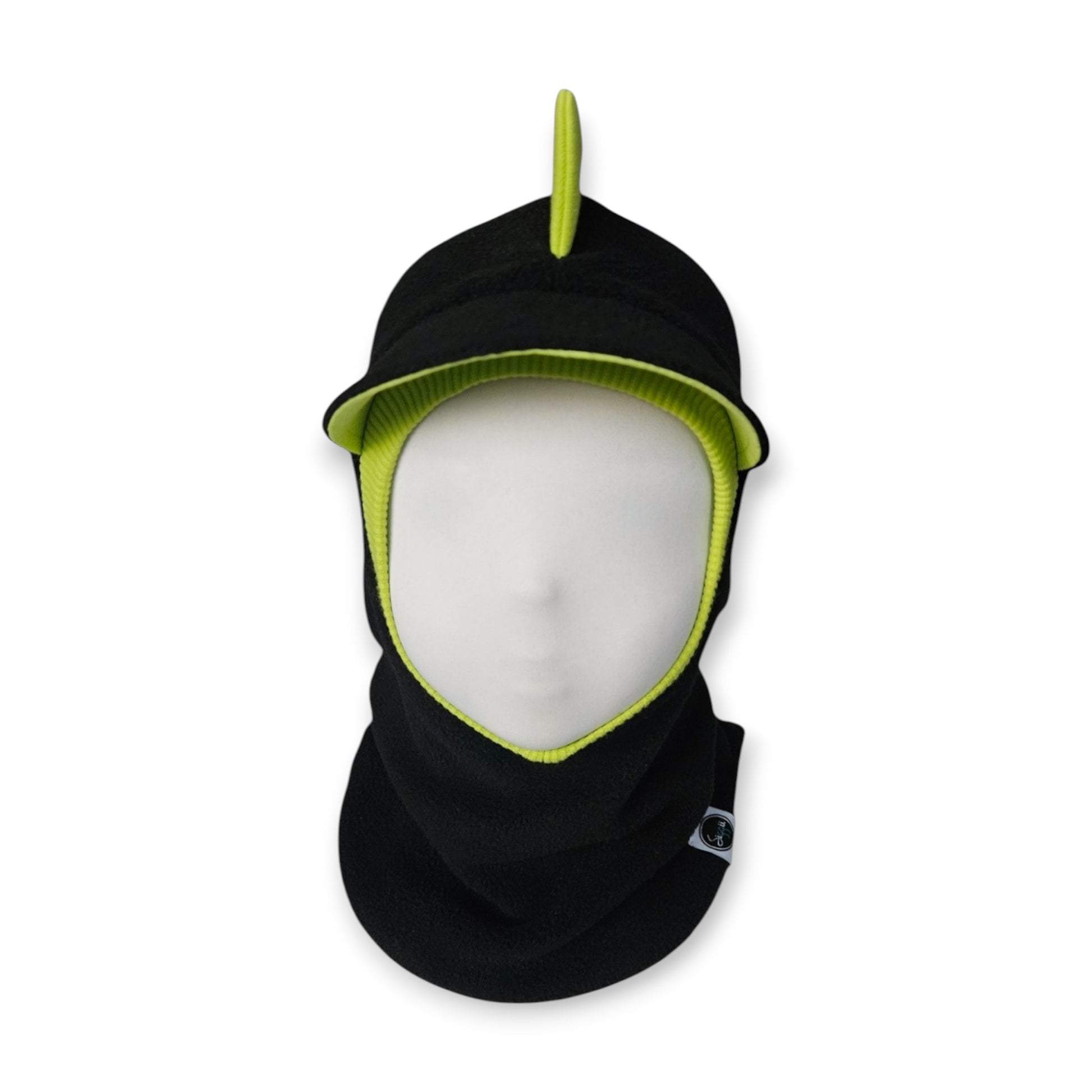 Balaclava Visor Dino Hat - Black / Bright Green Border/ 2 Reflective Spikes