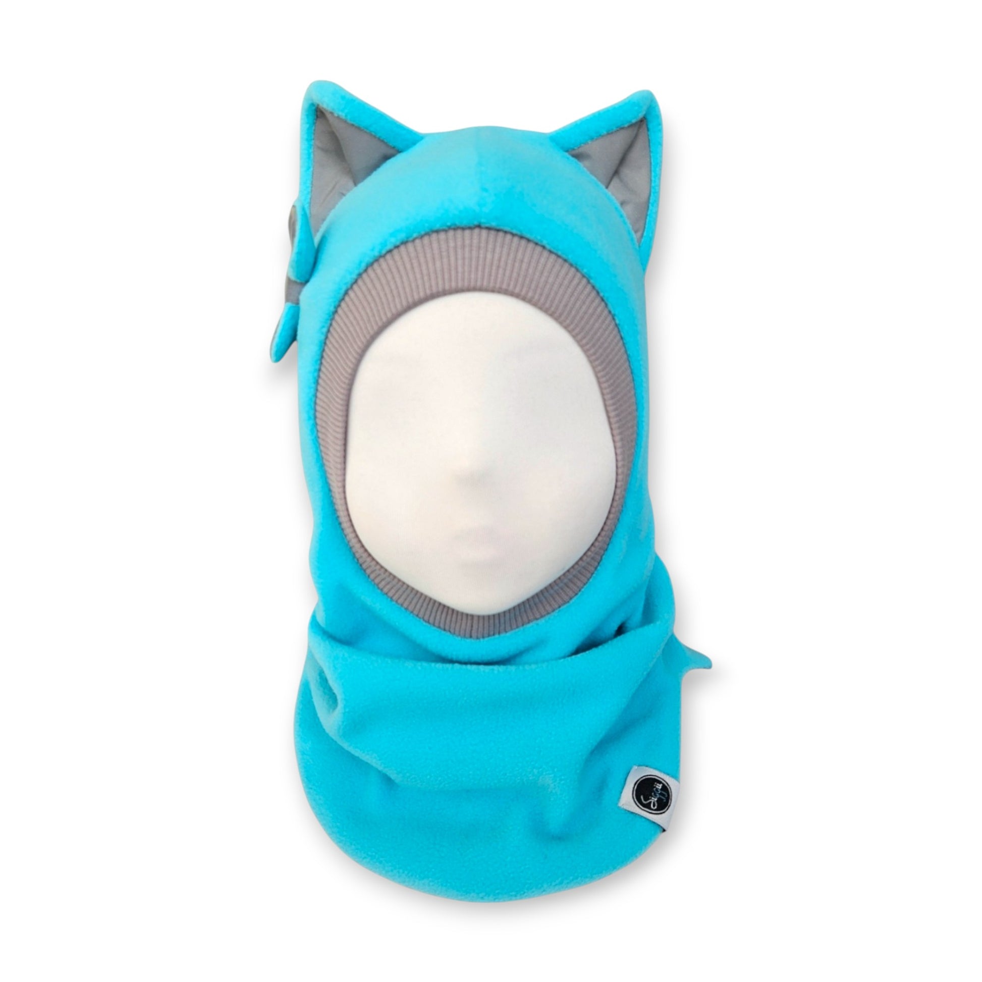 Winter Hat Cat Balaclava - Mint / Light Grey Border / Reflective Ears & Bow